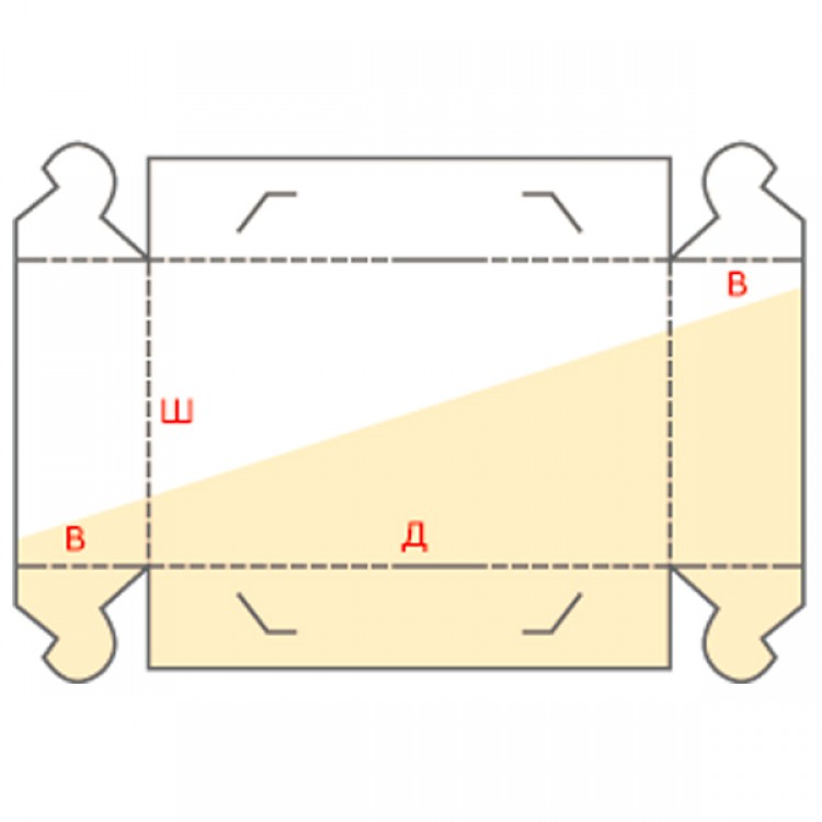 Конструкция самосборного типа без крышки. Выполнена из цельного листа плотного гофрированного картона, легко собирается по шести намеченным проектным линиям сгибов. Края торцевых концов при этом легко вдеваются в четыре специальных отверстия, проделанных в боковых гранях. Ящик отличается высокой прочностью и большой вместительностью. Такая тара удобна для складирования, транспортировки и реализации продукции, не требующей хранения в закрытом виде. Упаковку широко используют в розничной торговле малогабаритными товарами для демонстрации их на торговых прилавках и витринах.